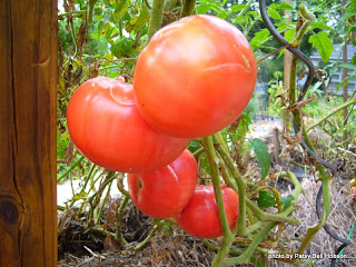 Finally, I am now getting some good sized tomatoes from the bales. The success will be short lived because of the blight. The bales are slowly imploding, collapsing in on themselves.